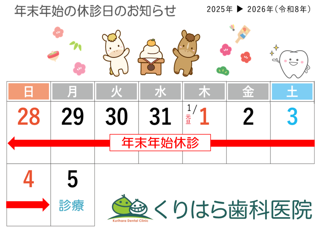 本年の年末年始の休診日は、下記の通りです。